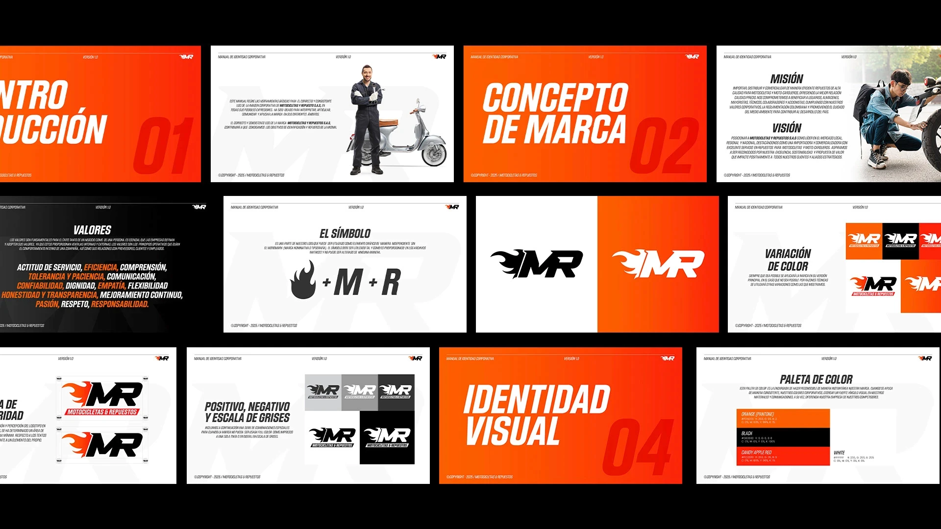 El objetivo fue desarrollar una identidad visual moderna, sólida y funcional que reflejara la esencia de Motocicletas y Repuestos: potencia, confianza y movimiento. Este proyecto buscó fortalecer la presencia visual de la marca, transmitiendo su experiencia en el sector y su compromiso con la calidad de los productos y servicios que ofrece a motociclistas y talleres.